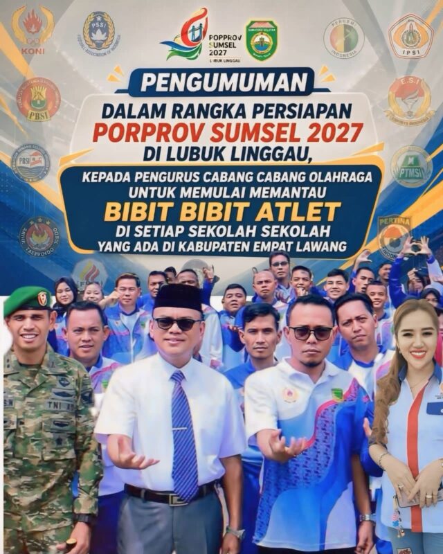Porprov Sumsel 2027 di Lubuklinggau menjadi target penting bagi Empat Lawang untuk memperbaiki peringkat dibanding edisi sebelumnya. Sinergi antara Dinas Pemuda dan Olahraga, KONI Empat Lawang, pengurus cabor, hingga pihak sekolah diharapkan berjalan maksimal.