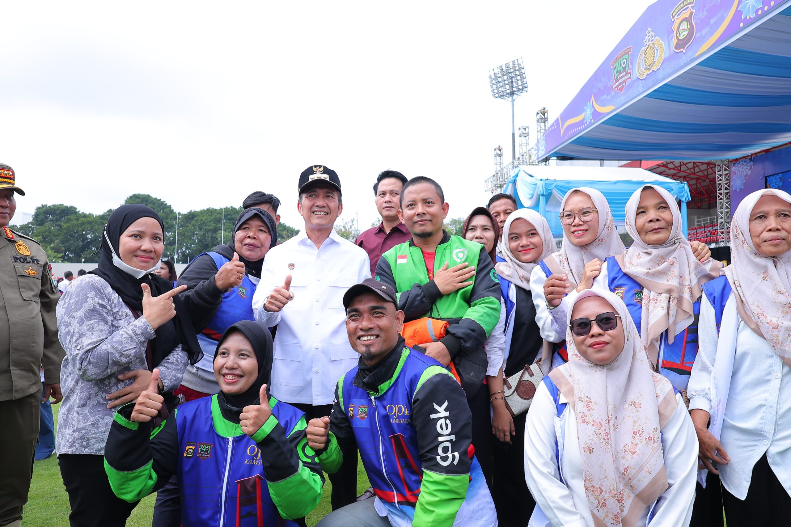 Wali Kota Palembang, Ratu Dewa memberikan apresiasi bagi ojol dan buruh yang berkomitmen menjaga keamanan dan ketertiban masyarakat (Kamtibmas).