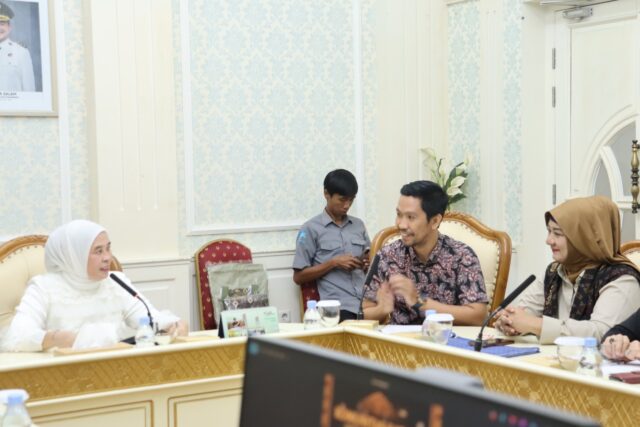 PASTIBERITA – Ketua Tim Penggerak (TP) Pemberdayaan Kesejahteraan Keluarga (PKK) Dewi Sastrani, menerima audensi dari komunitas Sanggar Tari Palembang (SATAPA) di Ruang Rapat II Setda, Selasa (14/4).